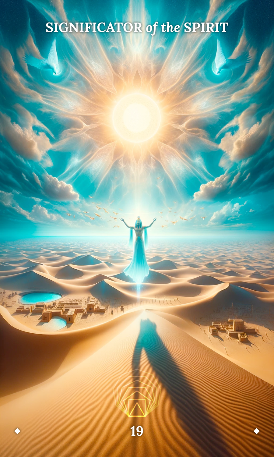 SIGNIFICATOR These cards are considered to represent the essence or the most important aspects of each cycle. | ![]() Significator of the Mind Represents the higher wisdom and knowledge within the individual's mind. It symbolizes the search for truth, understanding, and the desire to gain insights into the mysteries of life. Represents the mind's potential for spiritual awakening and the role of the mind in the evolution of consciousness. | ![]() Significator of the Body Represents the physical body's ability to surrender and let go. It symbolizes the release of old patterns, habits, and attachments that may be holding the individual back in their physical experiences. Highlights the importance of flexibility, adaptability, and the willingness to change in the journey towards physical harmony and well-being. | ![]() Significator of the Spirit Represents the true spiritual essence or the divine spark within each individual. It symbolizes the joy, vitality, and creative energy that the spirit brings to life. Serves as a reminder of the individual's inherent connection to the divine and their potential for spiritual growth and self-realization. |