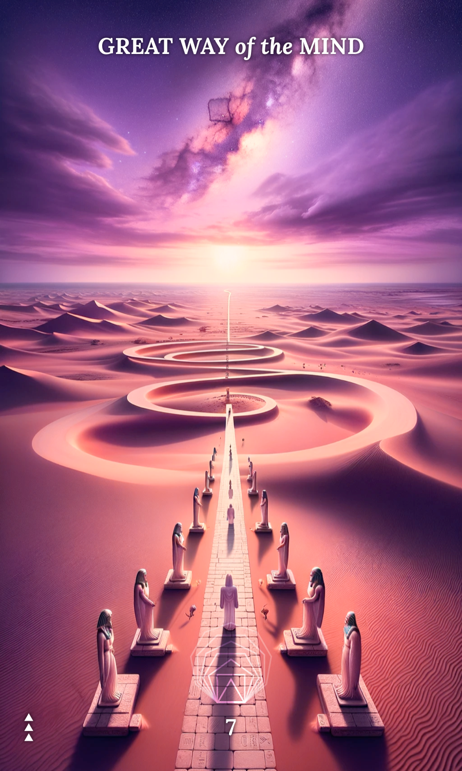GREAT WAY These cards are considered to represent the culmination or completion of each cycle and the integration of the lessons learned. | ![]() Great Way of the Mind Represents the mastery and control of the mental realm. It symbolizes the successful integration of the conscious and subconscious aspects of the mind, leading to a balanced and harmonious mental state. Highlights the importance of discipline, focus, and determination in achieving personal growth and spiritual evolution. | ![]() Great Way of the Body Represents the achievement of balance, harmony, and equilibrium within the physical body. Symbolizes the successful integration of the physical and spiritual aspects of the individual, leading to a state of overall health and well-being. The Great Way of the Body card emphasizes the importance of moderation, balance, and the need for self-care in maintaining a healthy and vibrant physical existence. | ![]() Great Way of the Spirit Represents the completion of the spiritual journey and the realization of one's true spiritual nature. Symbolizes the integration of all the spiritual lessons and experiences encountered throughout the individual's life, leading to a state of wholeness, fulfillment, and enlightenment. The Great Way of the Spirit card serves as a reminder of the ultimate goal of spiritual growth and self-realization. |