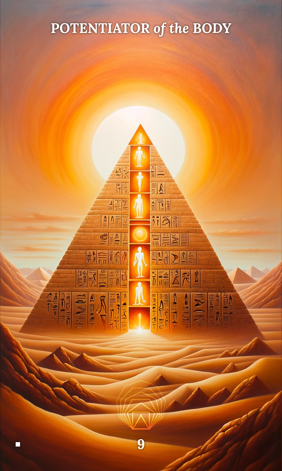 POTENTIATOR These cards are considered to represent the potential energy or catalysts that activate and enhance the core aspects of each cycle. | ![]() Potentiator of the Mind Represents the subconscious mind or the unconscious aspect that influences the conscious mind. Symbolizes the hidden knowledge, intuition, and inspiration that can guide and enhance the individual's mental processes and experiences. | ![]() Potentiator of the Body Represents the catalyst that activates and enlivens the physical body. Symbolizes the process of self-discovery and introspection that allows an individual to understand and utilize their physical form more effectively. | ![]() Potentiator of the Spirit Represents the transformative energy that drives spiritual growth and evolution. Symbolizes the process of breaking down old structures, beliefs, and limitations to make way for the emergence of the true spiritual self. |