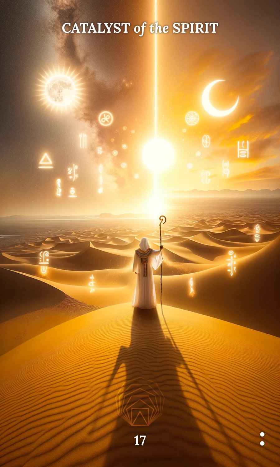 CATALYST These cards are considered to represent the experiences or events that trigger growth and transformation within the core aspects of each cycle. | ![]() Catalyst of the Mind Represents the variety of experiences that stimulate the conscious mind and shape the individual's mental processes. Symbolizes the creative and nurturing forces that inspire the mind to grow and evolve. | ![]() Catalyst of the Body Represents the physical experiences and challenges that activate and engage the body. Symbolizes the cycles of change, growth, and transformation that individuals encounter in their physical lives. | ![]() Catalyst of the Spirit Represents the spiritual experiences and influences that inspire an individual's spiritual growth and awakening. Symbolizes the guiding light and higher aspirations that lead individuals towards their true spiritual nature. |