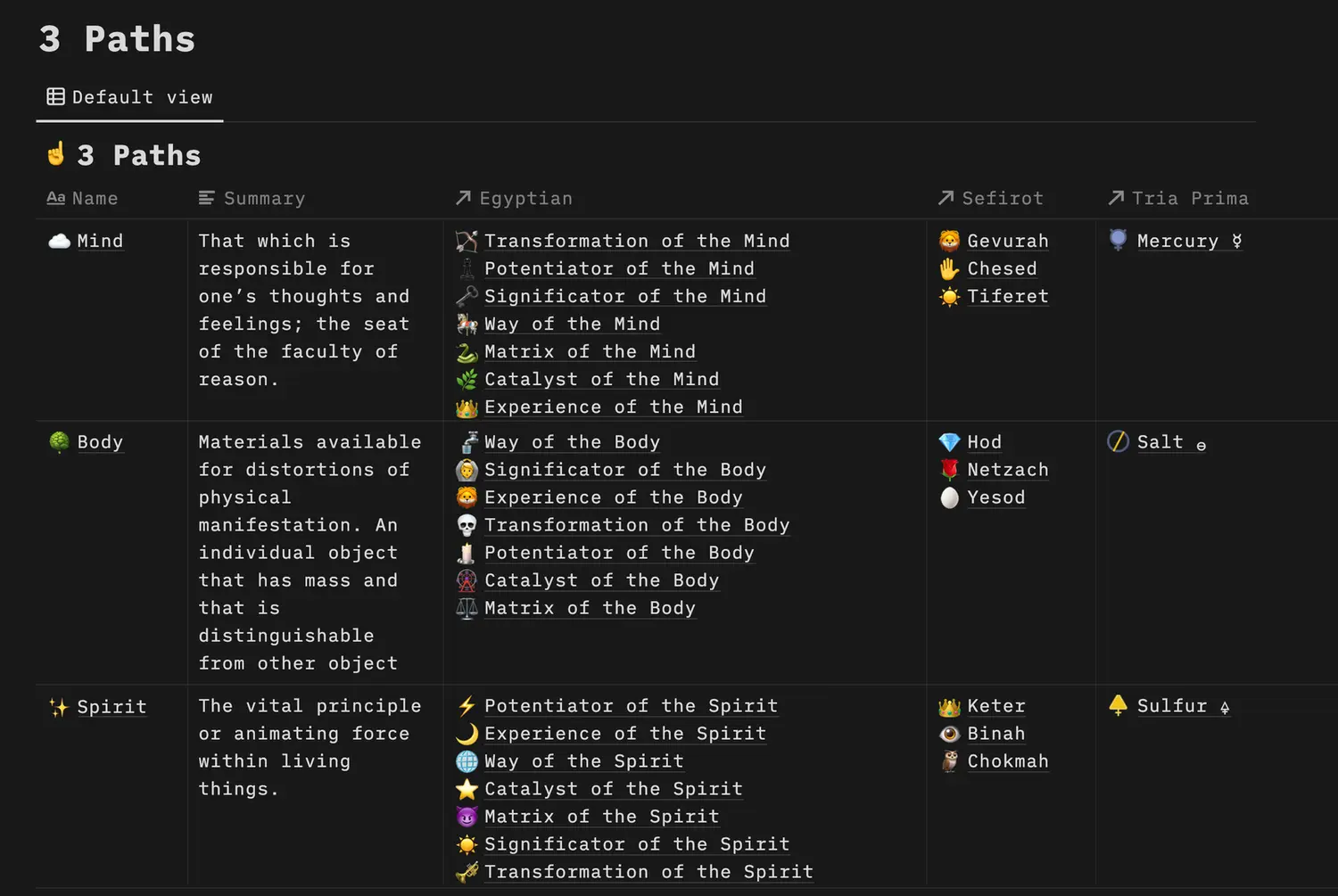 Each foundation, or path, represents the aspect of the adept which is experiencing the Archetype. They are the Mind, Body and Spirit.